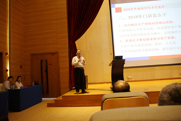 2018年3月5日,由天意有福主辦、大洋圖文、富麗圖快印聯(lián)合協(xié)辦的主題為“華南快印2018怎么搞交流會”在廣州市黃埔區(qū)保利假日酒店報告廳隆重舉行。天意有福副總經(jīng)理董祖明、王亦兵、吳楊文,富麗圖快印總經(jīng)理束永春,柯尼卡美能達梁曉麟,大洋圖文總經(jīng)理陳育明,悟空快印劉敏,六九快印曾中輝,點源科技總經(jīng)理何根山等13位嘉賓出席了此次會議。下午13點30分,柯尼卡美能達梁曉麟先生致辭,宣布會議開始,近兩百家快印企業(yè)代表針對行業(yè)趨勢、互聯(lián)網(wǎng)技術(shù)應(yīng)用以及未來發(fā)展方向等話題,結(jié)合本公司經(jīng)營策略展開了精彩的行業(yè)對話。